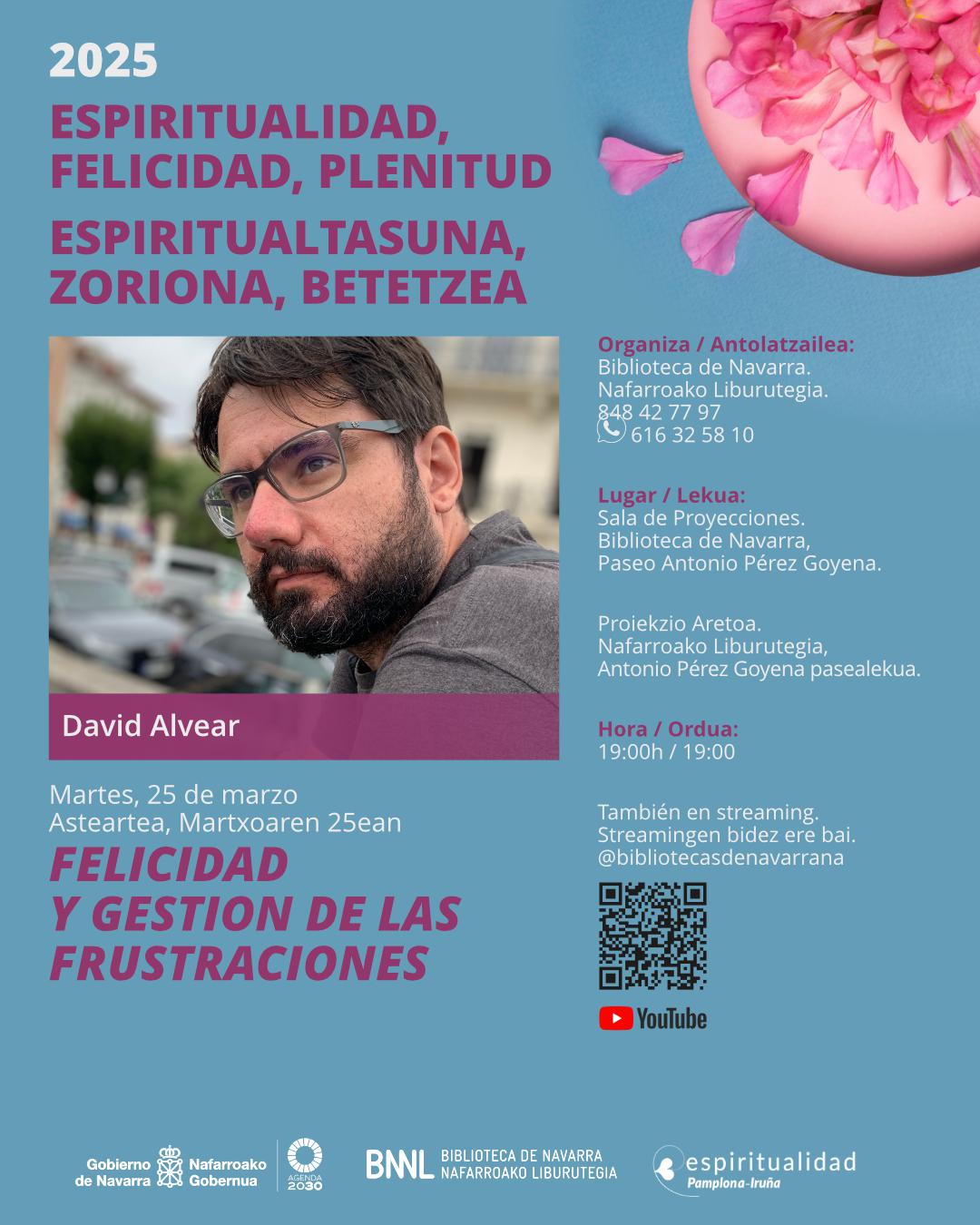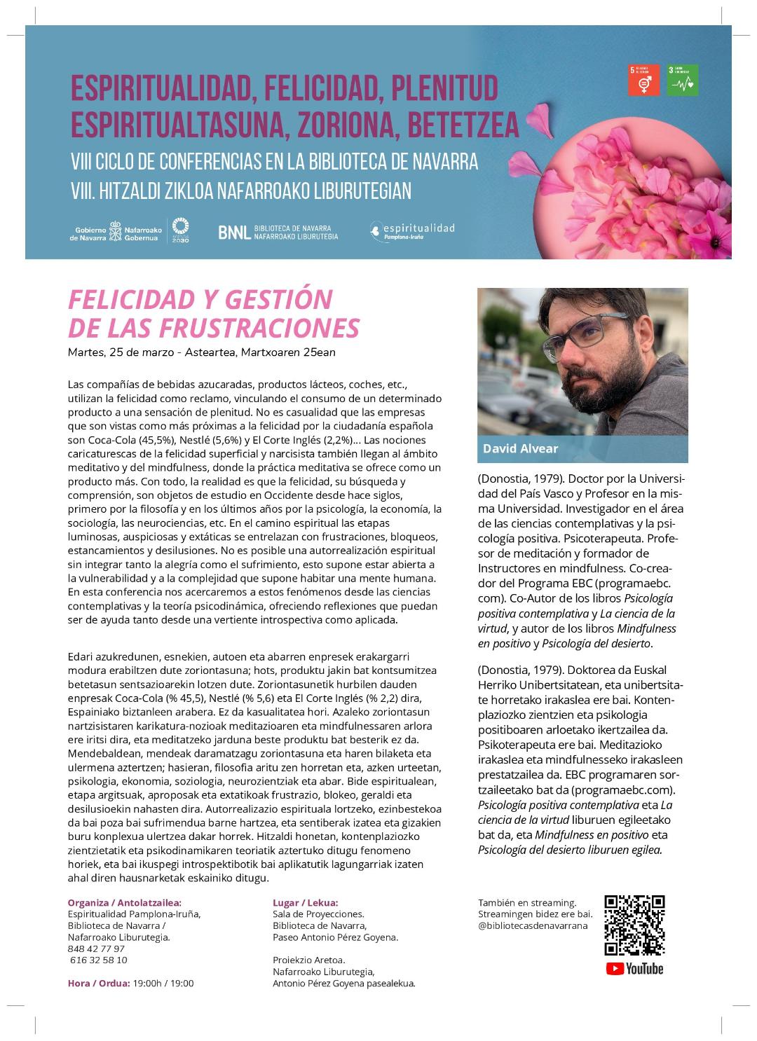 Segunda conferencia del ciclo 'Espiritualidad, Felicidad, Plenitud' organizado por la Asociación Espiritualidad Pamplona-Iruña, en colaboración con la Biblioteca de Navarra.