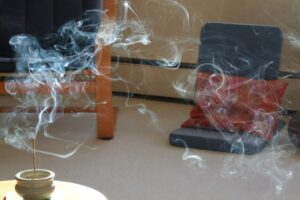 Una varilla de incienso ardiendo. El humo cambia de forma y se disuelve en el todo. Cuerpos, Lo que...