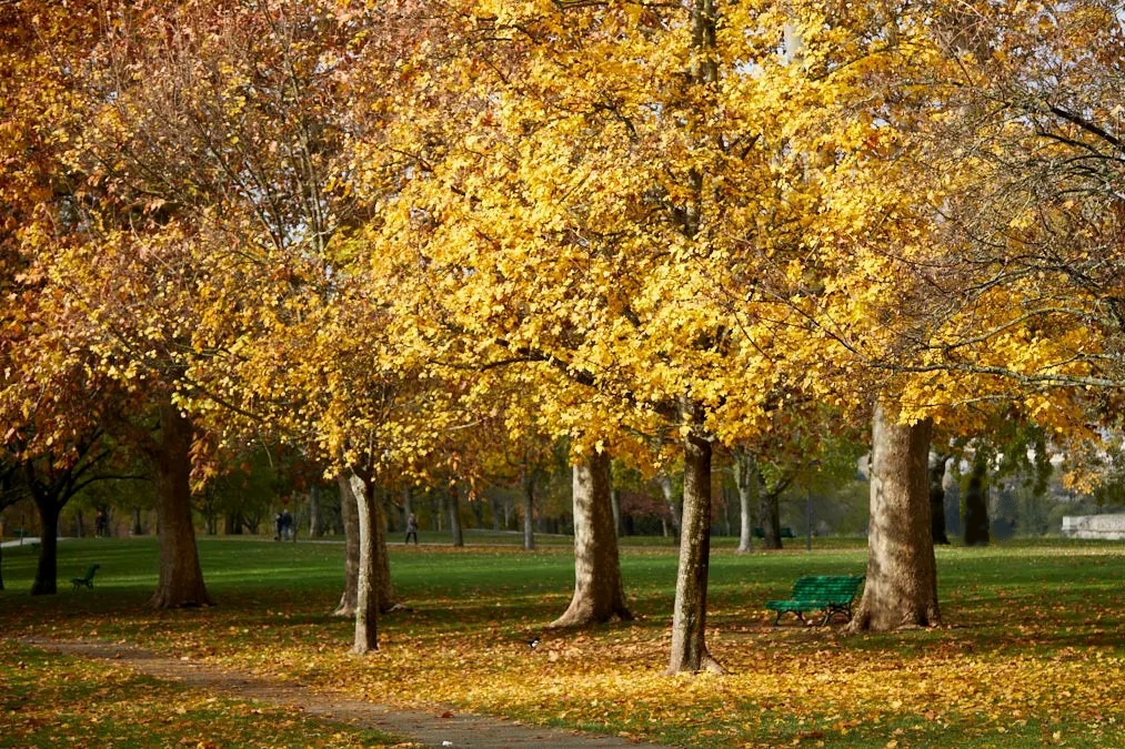 Paseando por los jardines de mi ciudad, observo las hojas de los árboles que caen en esta tarde otoñal y ventosa.